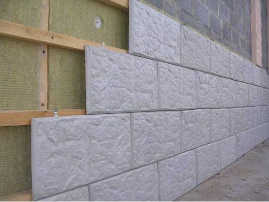 - Искусственный бетонный камень считается самым простым и доступным вариантом. Его несомненное достоинство в том, то такую фасадную плитку легко сделать своими руками – нужно просто разлить раствор по нужным формам. К недостаткам нужно отнести недолговечность: цемент очень плохо воспринимает воздействие влаги. К тому же, это не самое лучшее решение для дома, находящегося в северных регионах – понадобится дополнительное утепление. бетонная плитка