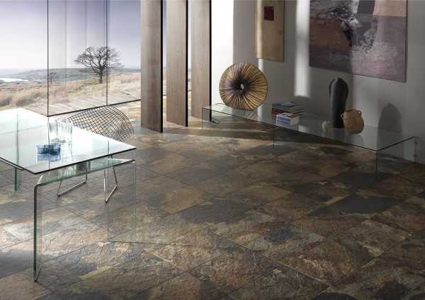 Напольная плитка под камень с нулевым влагопоглощением и полным отсутствием микротрещин, используется для внутренней отделки дома, а также укладывается на террасе, крыльце и даже применяется для отделки дорожек во дворе.