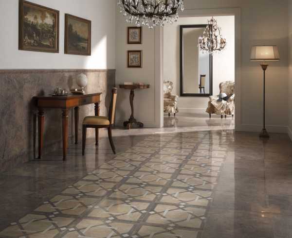 Материал с яркой расписной поверхностью. Особенно хороша плитка на стену под мрамор; укладывать ее лучше без соблюдения рисунка и по всей стене, выбирать крупные плиты, чтобы минимизировать количество швов. Такое покрытие создаст невероятный визуальный эффект в помещении, некую сказочную атмосферу, что можно усилить при помощи искусственного света.