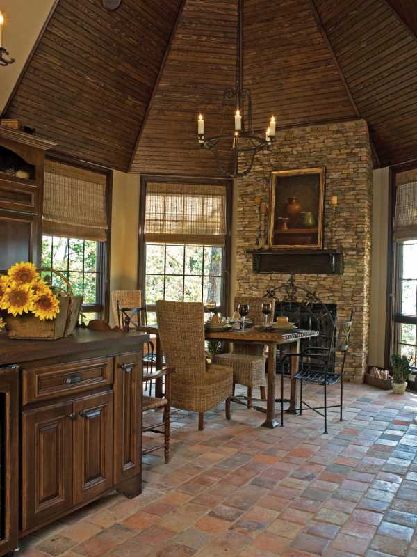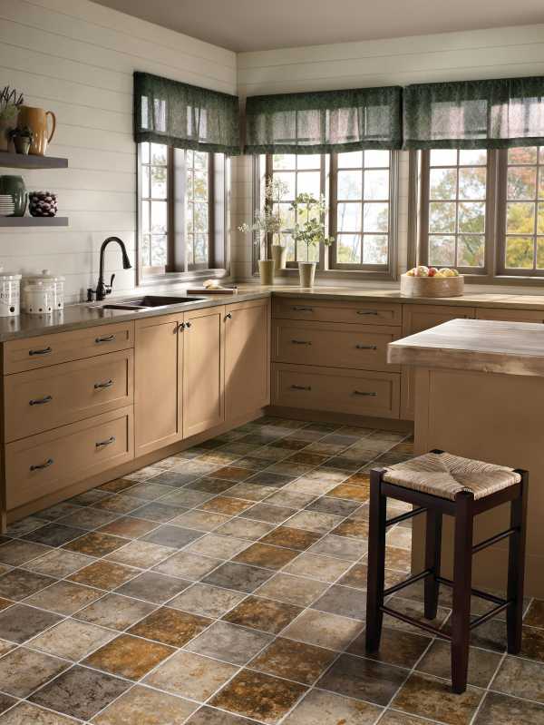Уникальный вид интерьеру придаст плитка под дикий камень. Натуральный аналог не подходит для внутренней отделки, так как травмоопасен для человека и негигиеничен. Искусственный материал полностью имитирует природный, но обладает отличными эксплуатационными свойствами. Плитка отличается шероховатой поверхностью, потому подходит для укладки на пол в помещениях с большой проходимостью и влажностью, в частности, на кухне, в коридоре, ванной комнате.