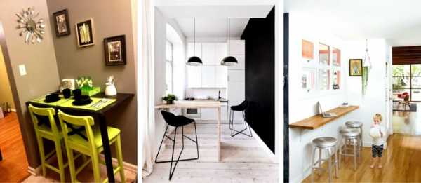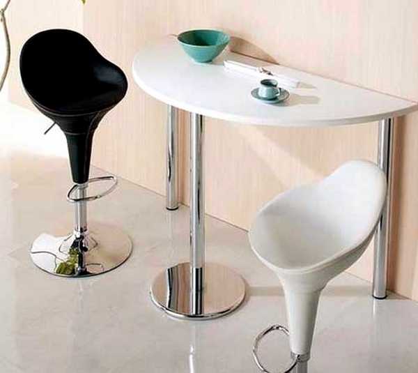 Этот столик похож на те, которые мы видим в поездах. Обычно он довольно узкий и имеет одну ножку или диагональную опору на стену. Удобнее всего, когда такой стол крепится к стене короткой стороной, но габариты не каждой кухни позволят расположить его именно так.
