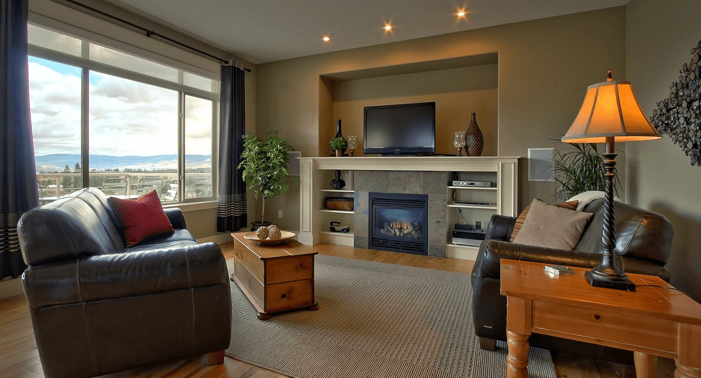 Во-первых, расположенный чересчур высоко телевизор неудобно смотреть. Во-вторых, так экран может отсвечивать. Однако в условиях ограниченного пространства решение может являться единственно возможным. В комнатах премиум-класса телевизор вешают над камином. Так, просмотр фильмов, сопровождающийся треском сгораемых поленьев, станет еще более приятным.
