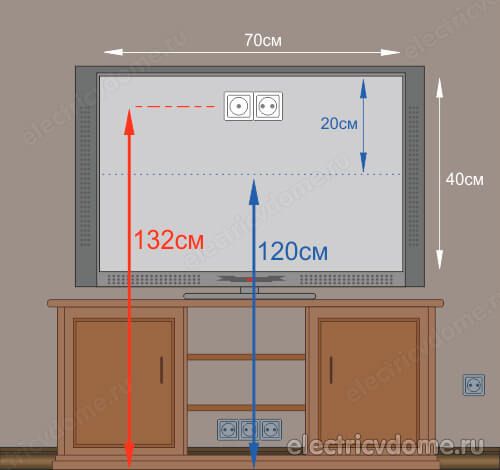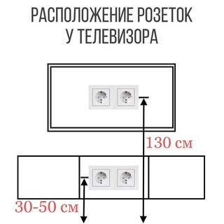 Если в помещении еще ведутся ремонтные работы, рекомендуется предварительно спроектировать и подготовить место размещения телевизора, а также соответствующие заключения.Обязательно понадобятся три обычных розетки и один телевизор. Все они должны располагаться за панелью телевизора. Если он укомплектован дополнительным тюнером или адаптером Wi-Fi, у нас не будет недостатка в розетках для подключения устройств. Розетку удобно расположить на расстоянии 10 сантиметров от нижнего края дисплея (или сверху — не беда). Если под телевизором стоит подставка с другой техникой, эти розетки тоже не мешают.