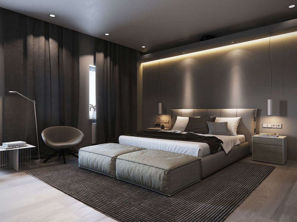 Есть несколько универсальных правил оформления спальни в темных тонах.