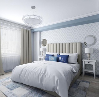Для спальни лучше всего использовать светлые оттенки синего цвета, они оптимально впишутся в любое помещение, будь оно большое или маленькое.