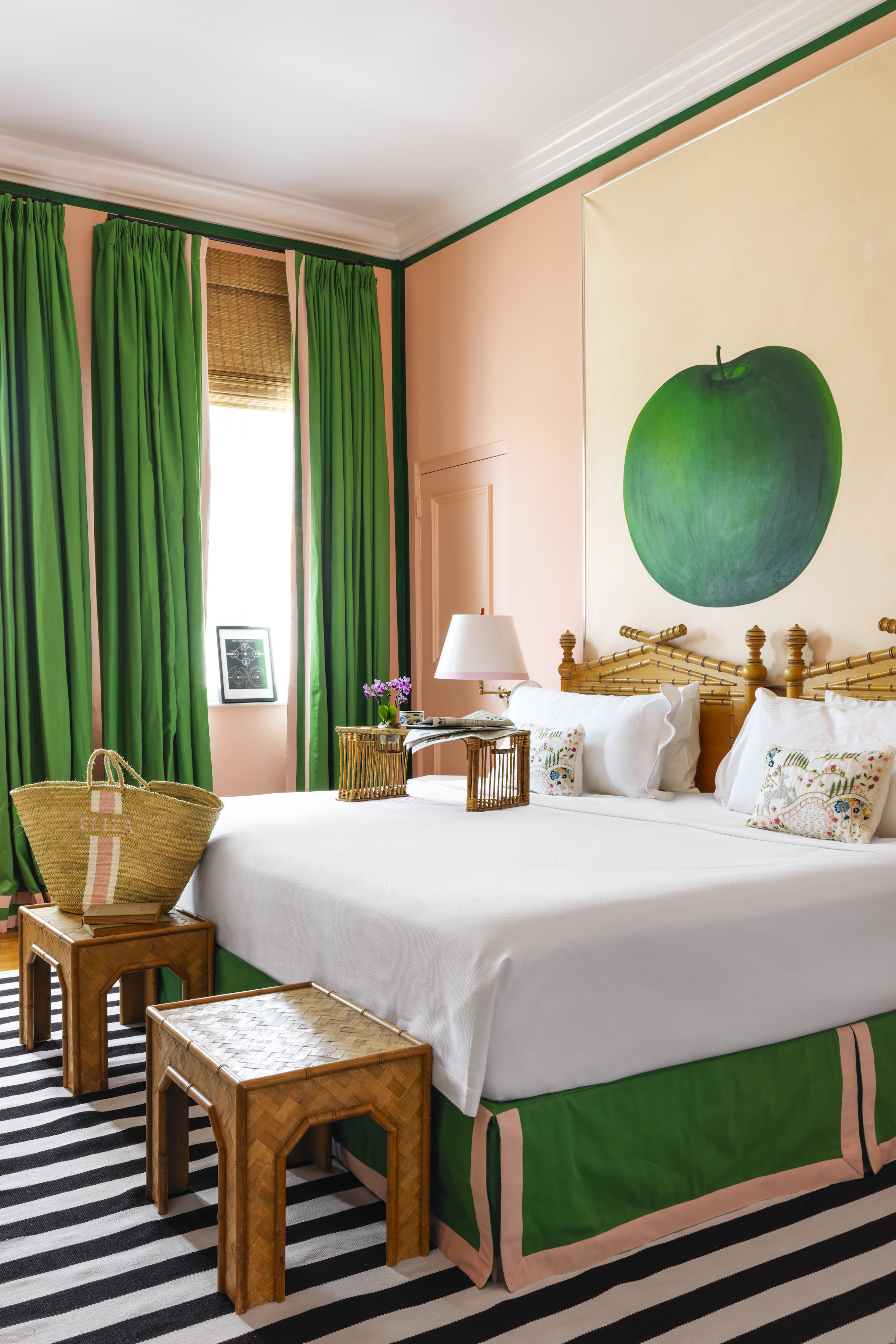 Вам не нужно красить комнату в зеленый цвет, чтобы использовать более темно-зеленый в спальне.Вместо этого поищите мебель зеленого цвета.