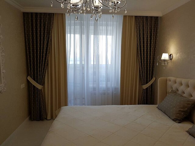 Следует отметить, что для спальни оправдано использование плотных тканей во всех слоях, так как это способствует дополнительной защите от звука с улицы, холода и света, ведь дополнительная защита от света позволит дольше наслаждаться сном утром.