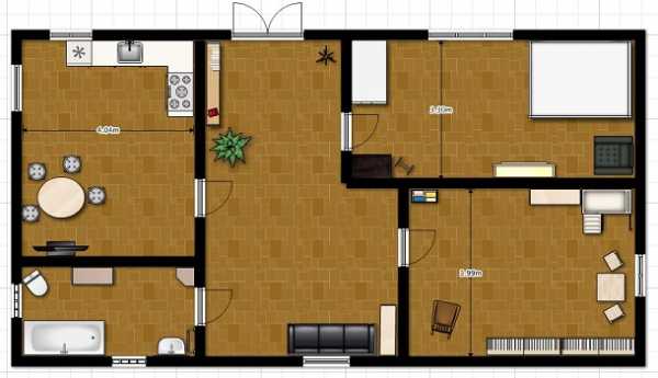 Ещё один бесплатный планировщик квартиры с простым интерфейсом и уроками для начинающих. Обучаться можно сразу, рисуя план квартиры. По ходу работы используйте всплывающие подсказки. При установке окон и дверей появляется выпадающее меню в которое надо вписать свои размеры. Дополнительный плюс — это каталог мебели. Мебель в базе данных от разных производителей. Поэтому всегда можно подобрать для себя что-нибудь подходящее. Здесь есть функция «панорама». После завершения проекта прогуляйтесь по новой квартире и оцените как она будет выглядеть в режиме реального времени. Приятный плюс — это возможность составления сметы будущего ремонта прямо в программе.