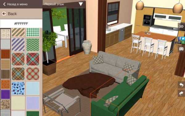 А в этой программе основной упор делается на материалы для разного вида поверхностей: пол, потолок, стены, столешница и так далее. Сотни вариаций и цветов — если есть время, можно посмотреть любые комбинации, чтобы найти то единственное и оригинальное сочетание, которое будет радовать конкретно ваш взор.