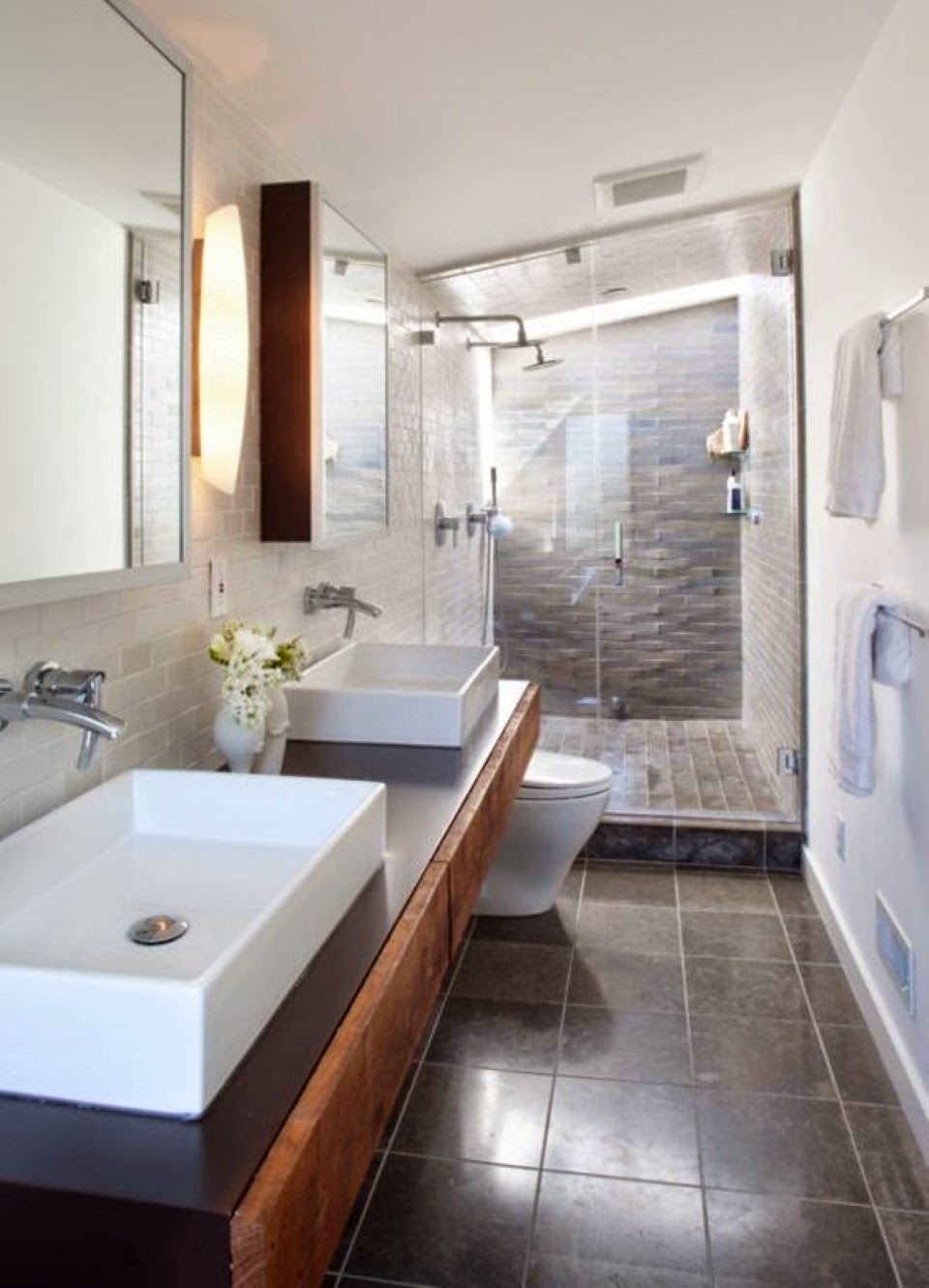 25+ самых блестящих идей для длинных узких ванных комнат, от которых у вас выпадет челюсть