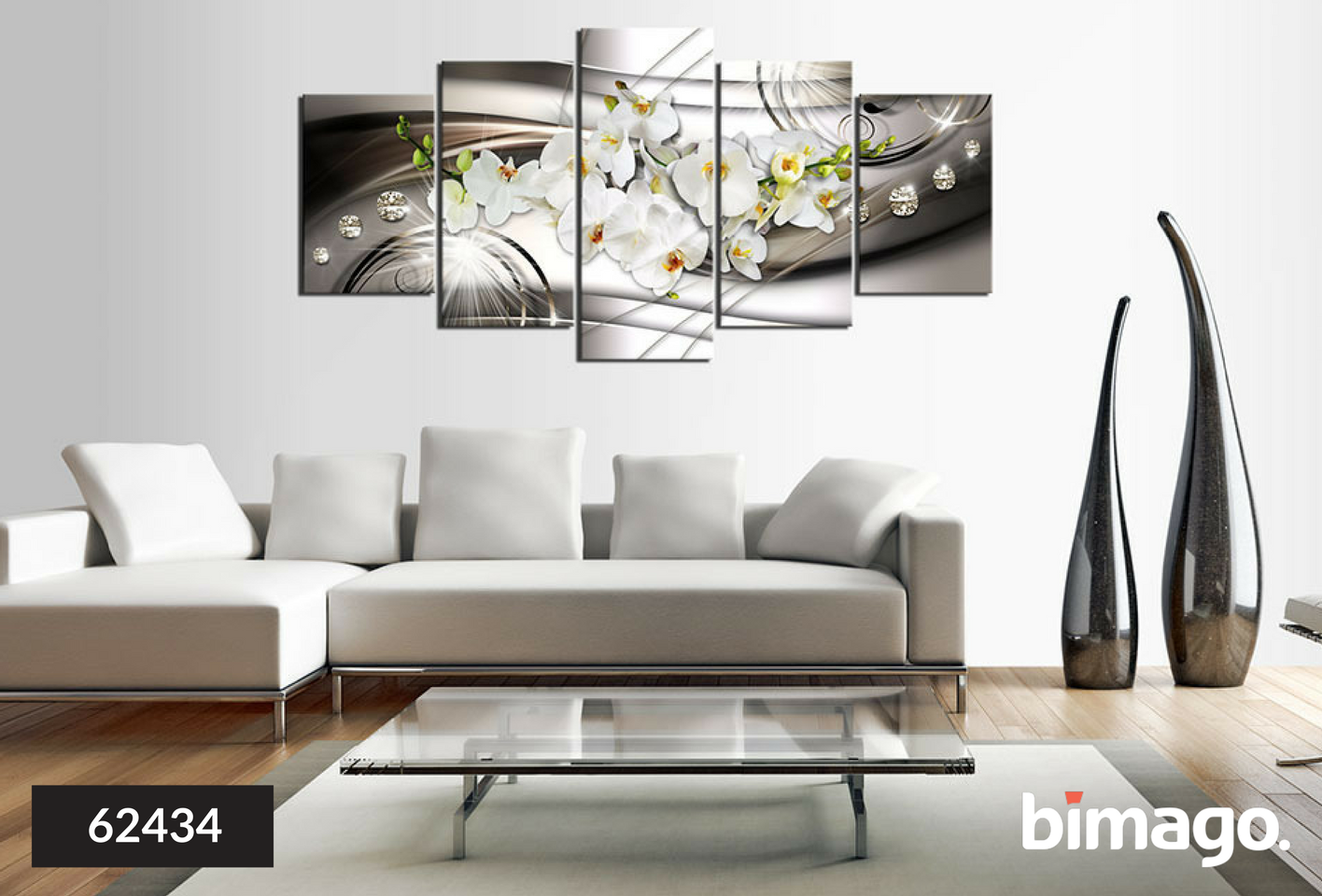 Модульные картины в интерьере гостиной цветы