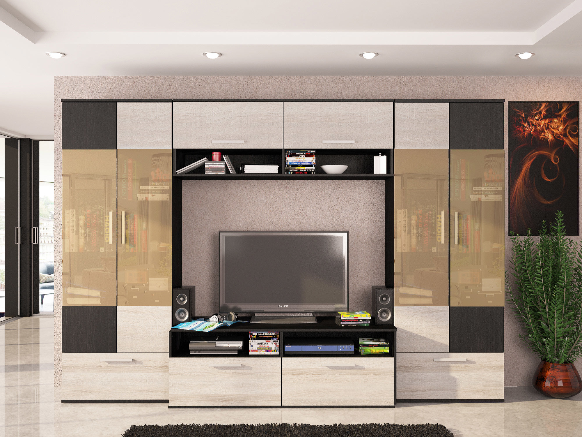 Это недорогой вариант, и производители выпускают множество самых разных моделей, что позволяет подобрать шкаф в любую гостиную.
