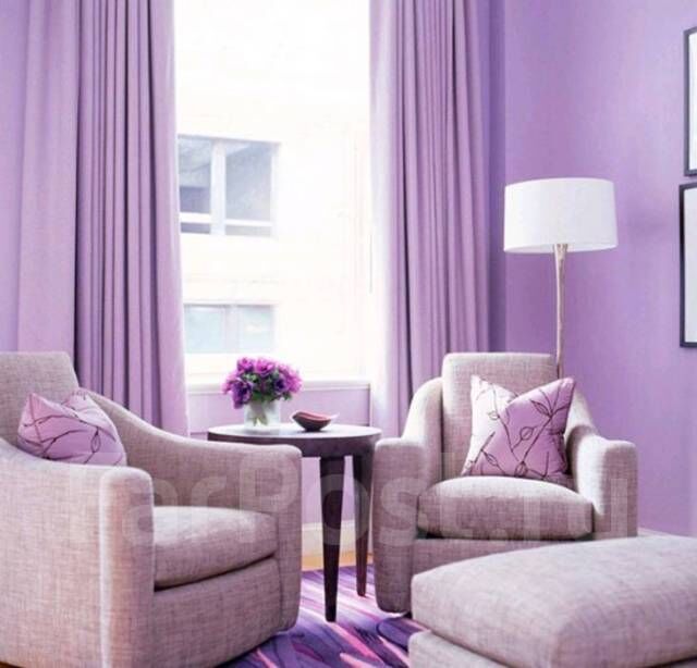 Отличные примеры – гостиная в сиреневых тонах фото.